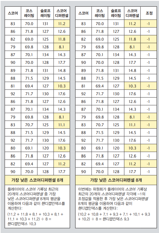 참고로 라운드를 자주하면서 최근 실력이 향상되는 경우를 고려하여 핸디캡을 재산정한 결과이다.